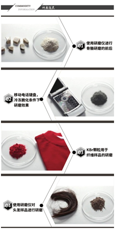 6.適用于塑料、聚合物包括PE、PS、紡織品、樹脂等樣品的研磨破碎。